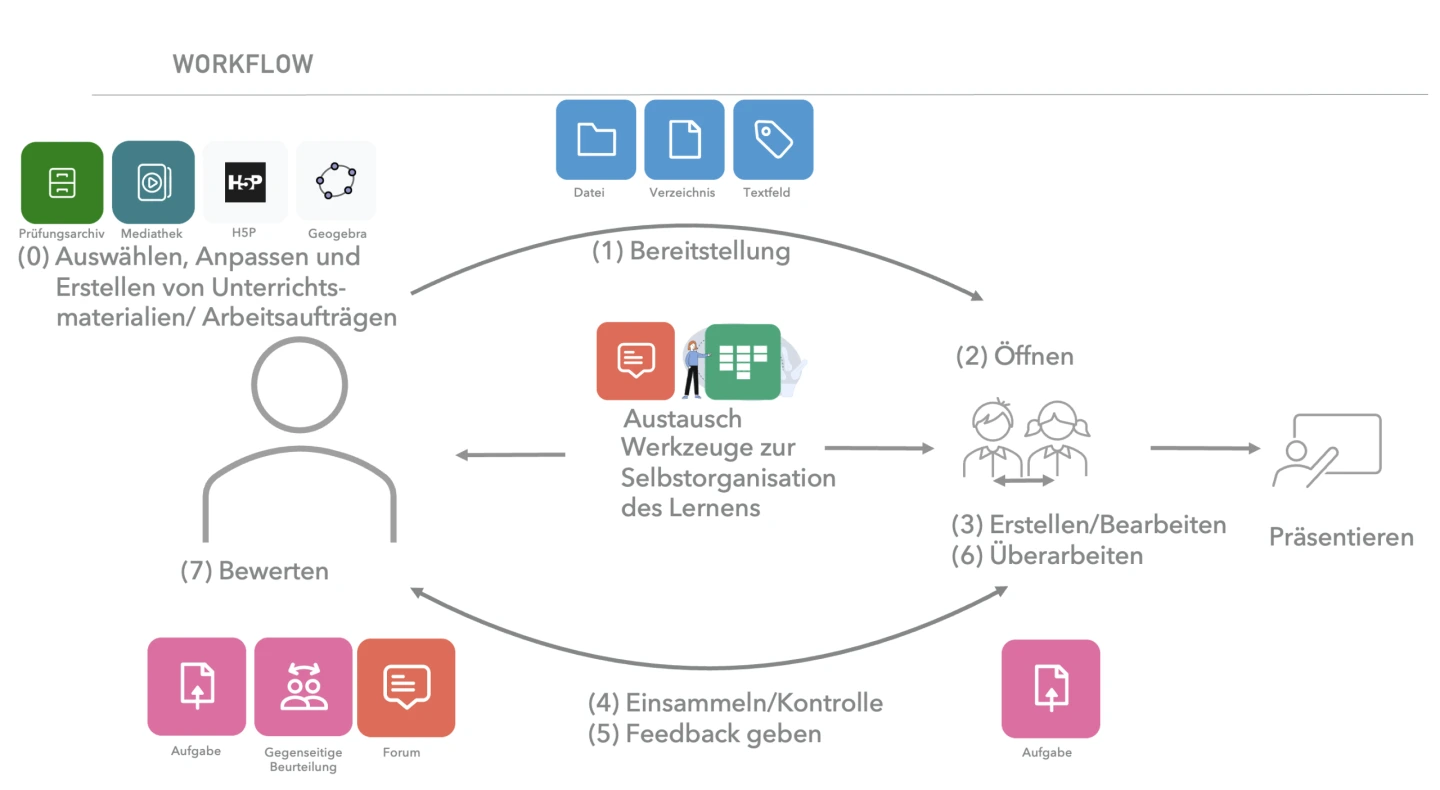 Zudem können Lehrkräfte mit Schülerinnen und Schülern Videokonferenzen über das Videokonferenztool Visavid halten und beispielsweise durch das Teilen eines Bildschirmes genau über Herausforderungen in einer Arbeitsphase sprechen und beraten.