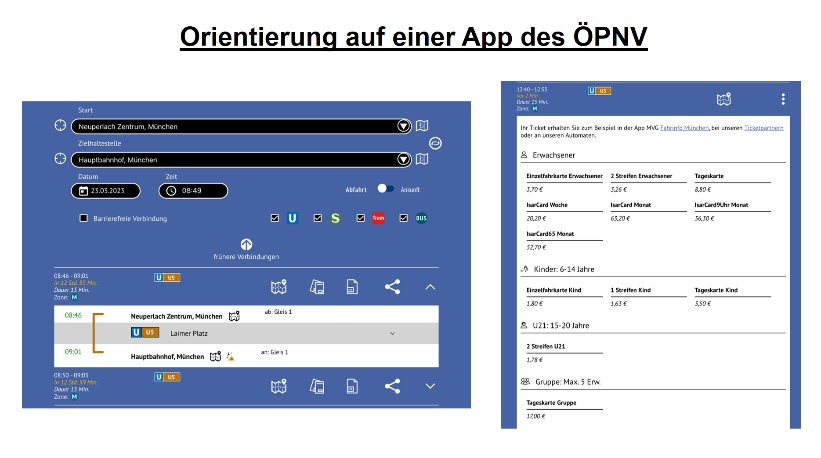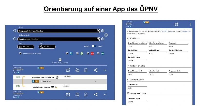 Lernende mit den Förderschwerpunkten Lernen, Sprache und geistige Entwicklung sind auf die Unterstützung von Apps bei der Benutzung des ÖPNV angewiesen. Die Handhabung muss jedoch im Unterricht regelmäßig geübt werden.