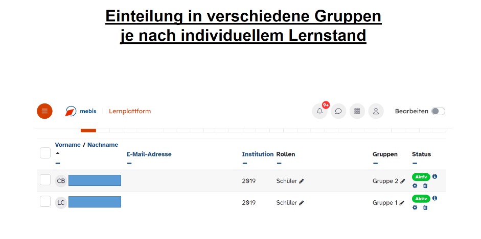In freien Übungsphasen erhalten die Lernenden die Möglichkeit, in Fächern ihrer Wahl selbstständig zu üben und Inhalte zu wiederholen. Durch die Ausstattung mit mobilen Endgeräten erhalten alle Lernenden individuelle Materialien und teilen sich die Aufgaben eigenständig ein.