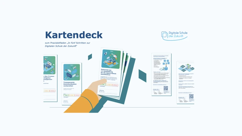Der PDF-Leitfaden soll als Wegweiser dienen, der Orientierung in den verschiedenen Prozessschritten gibt. Er verweist zudem auf einen vertiefenden Online-Informations- und Materialpool für Schulleitungen und Lehrkräfte, der per Link oder QR-Code erreichbar ist.