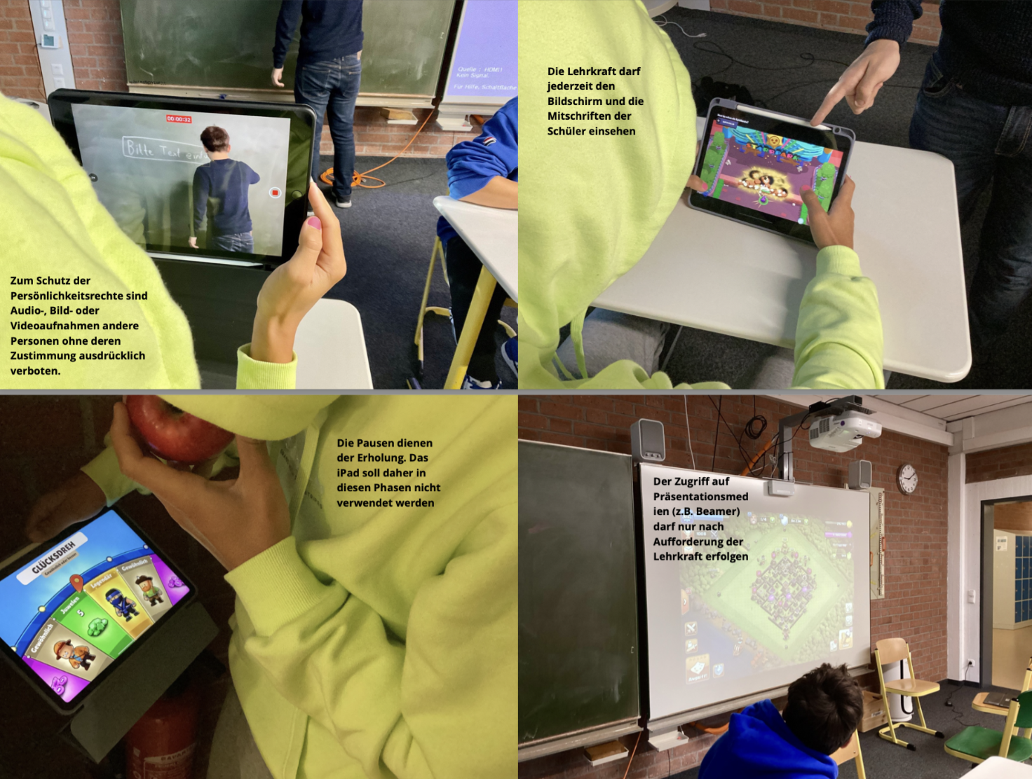 Die Einarbeitung in die neue Ausstattung der Schülerinnen und Schüler ermöglicht, auf verschiedene Aspekte der Medienerziehung einzugehen. Sowohl Einführungen in technische Bereiche als auch die Bekanntgabe von Regeln können genutzt werden, um die Lernenden in die Hintergründe des Regelkatalogs einzubinden und an wichtige Punkte der Medienerziehung anzuknüpfen.