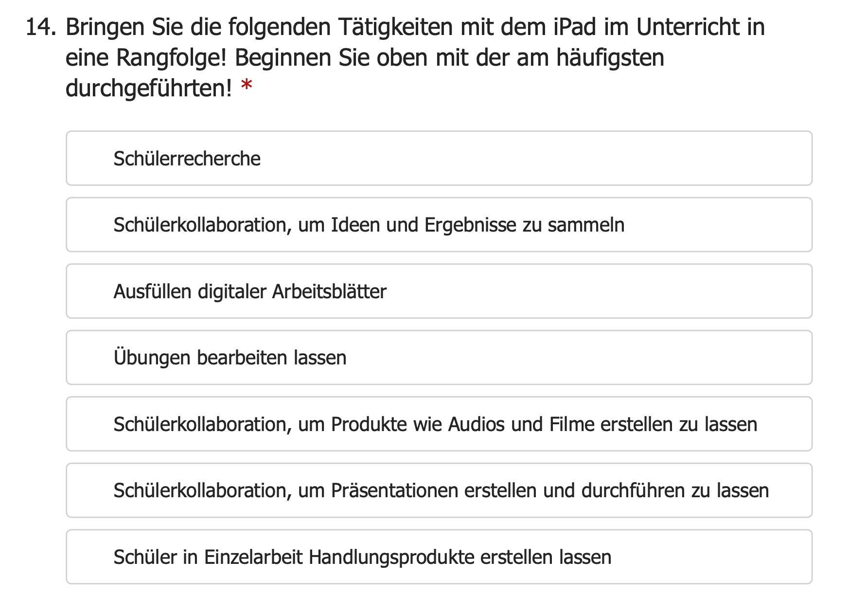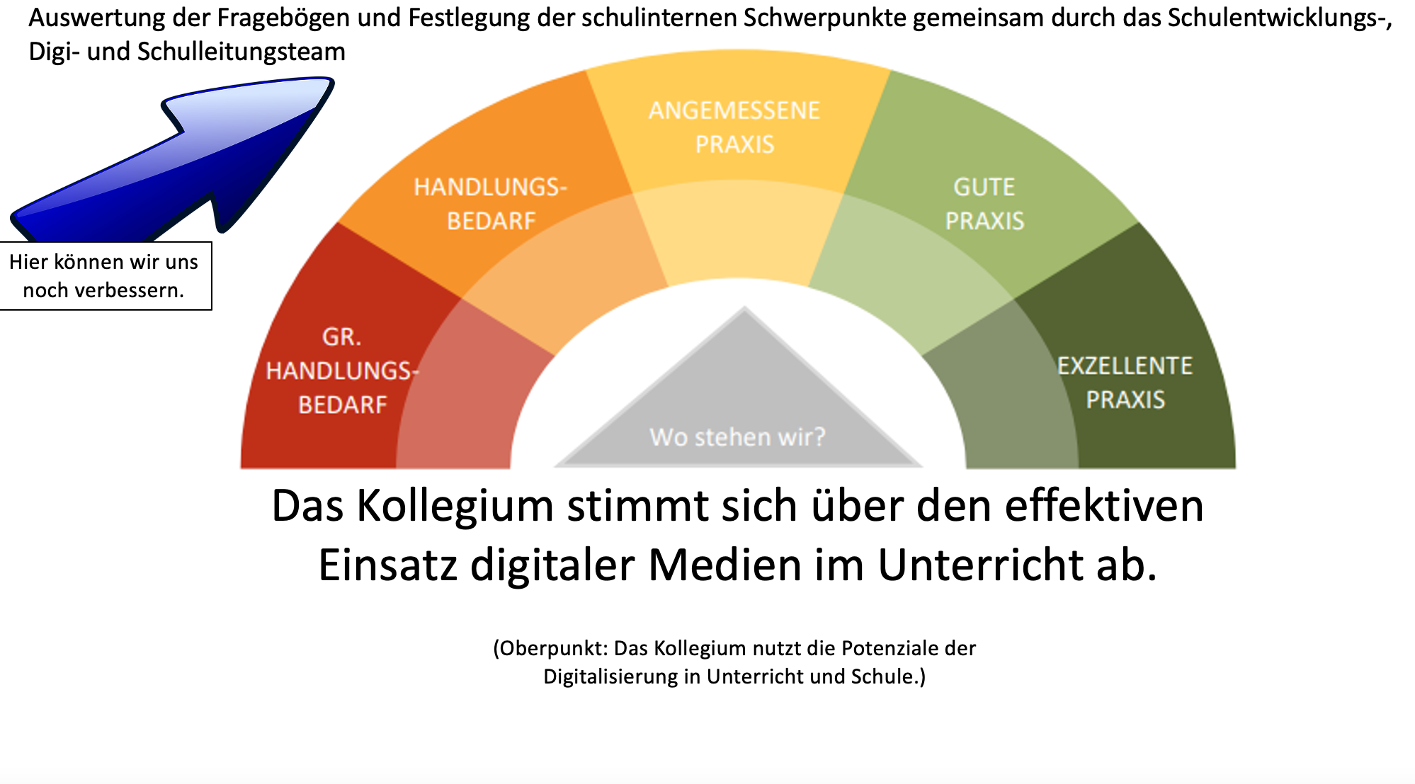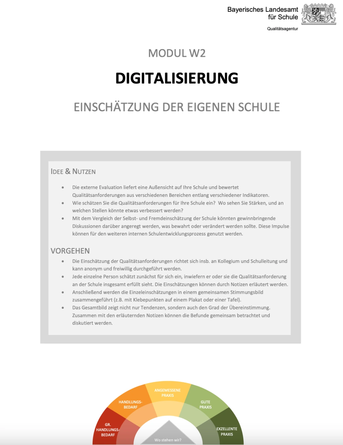 Für eine objektive Beurteilung des IST-Zustands auf der Ebene des Unterrichts ist folgender Fragebogen geeignet. Dieser kann online ausgefüllt oder die Fragen können in ein eigenes Umfragetool importiert werden.