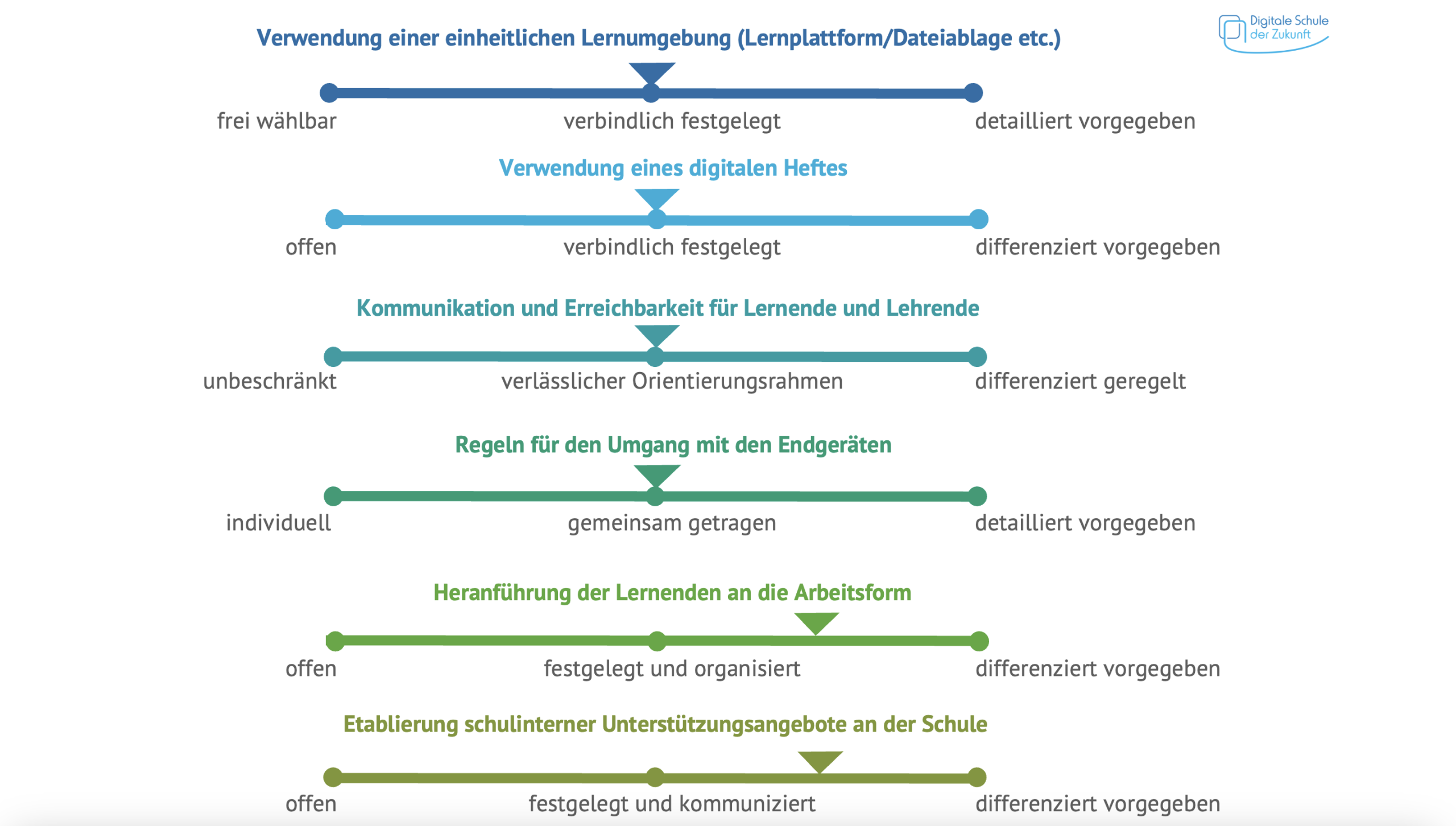 Um einen zuverlässigen pädagogischen Rahmen für das Lernen mit digitalen Endgeräten zu schaffen, ist es zielführend, sich über folgende Aspekte Gedanken zu machen und ggf. gemeinsam Absprachen dazu zu treffen: