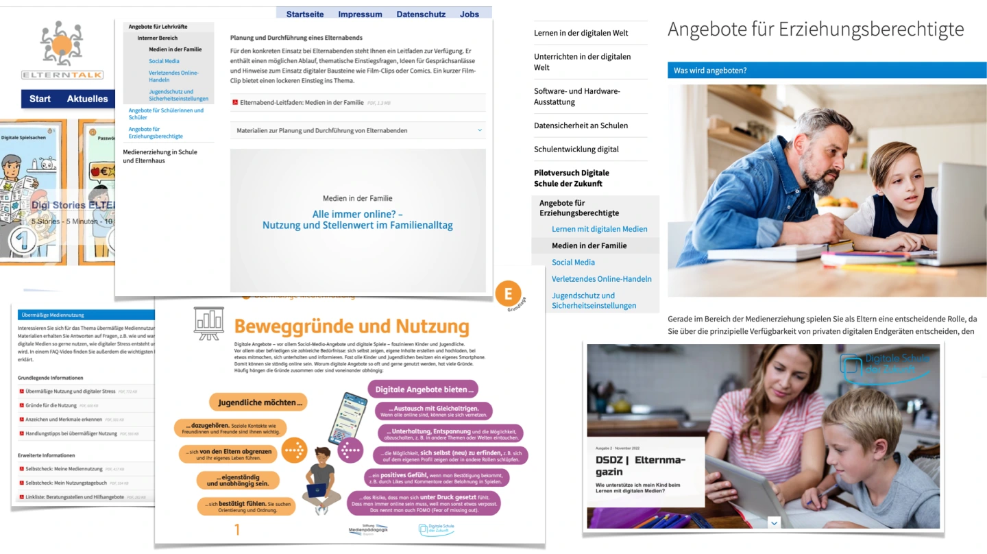 Umfangreiche und passgenaue Informationsmaterialien für Erziehungsberechtigte mit den wichtigsten Themen der Medienerziehung: