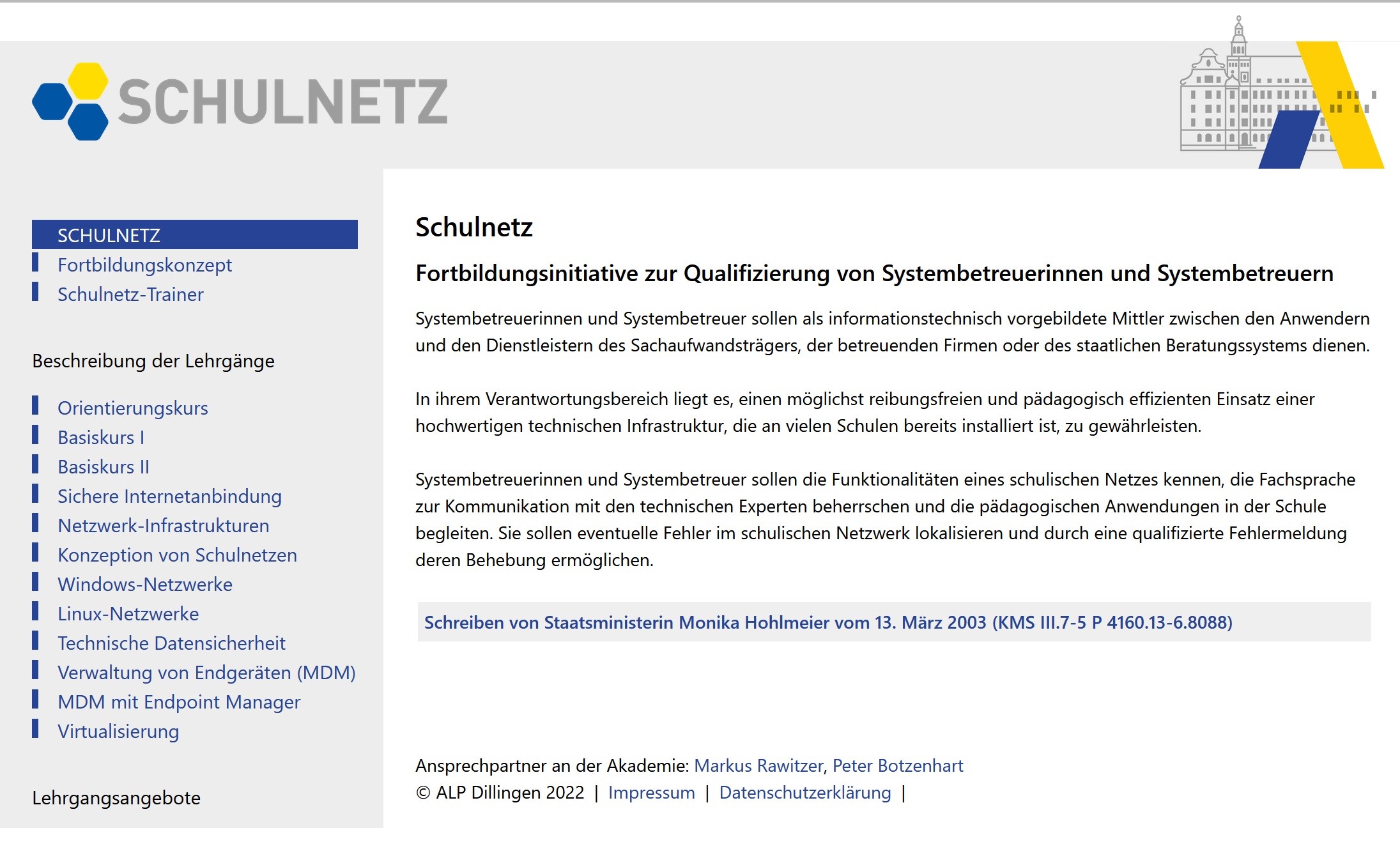 Schulnetz-Lehrgänge zur Qualifizierung von Systembetreuerinnen und -betreuern