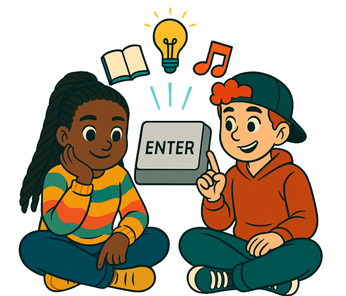 Leiten Sie über: „Beim Zeichnen habt ihr gemerkt: Je genauer die Beschreibung, desto besser das Ergebnis. Das Gleiche gilt bei der Nutzung einer KI. Wie wir gute Anfragen formulieren, zeigen uns jetzt Zoe und Noah.“