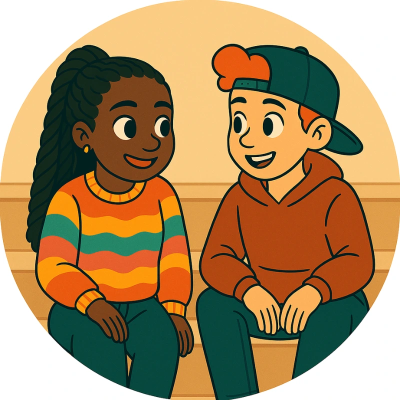 Noah und Zoe sitzen nach dem Unterricht auf der Schultreppe. Noah schaut gedankenverloren vor sich hin. „Es ist schon irgendwie krass: Ein paar Bots, ein paar Klicks – und plötzlich sieht mein ganzer Feed völlig anders aus.„