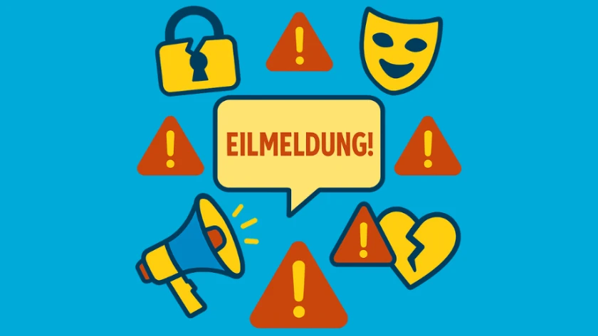 Nicht klicken oder teilen → Quelle auf zweiter, unabhängiger Seite checken → erwachsene Person fragen (Eltern/Lehrkraft).