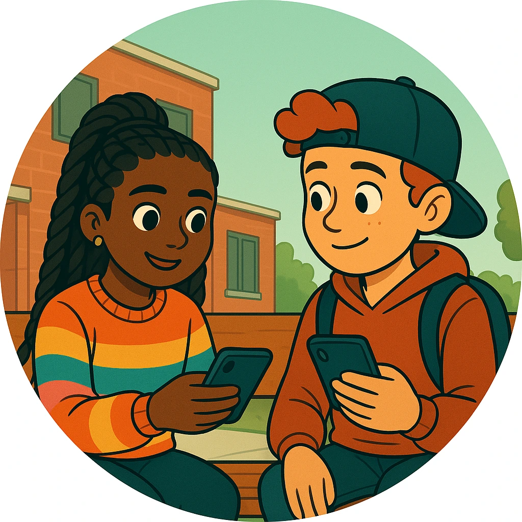 Am Nachmittag sitzen Zoe und Noah auf einer Bank und scrollen durch ihre Meldungen in den Apps.