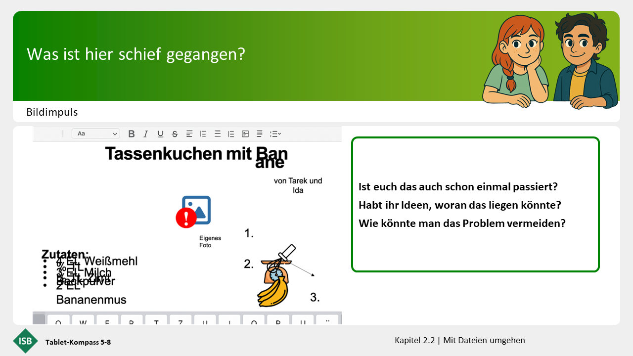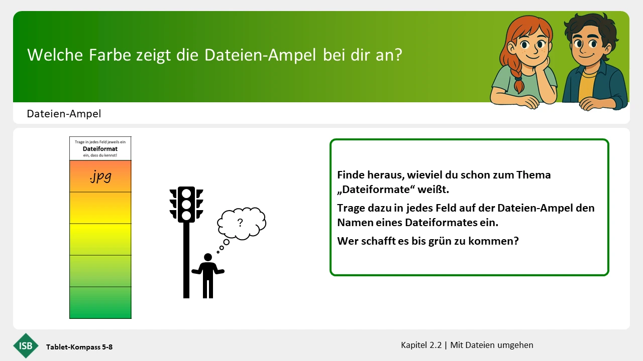 Der Bildimpuls wird über eine weitere Aktivität zur Vorwissensaktivierung („Welche Dateiformate kennt ihr schon?”) erweitert.