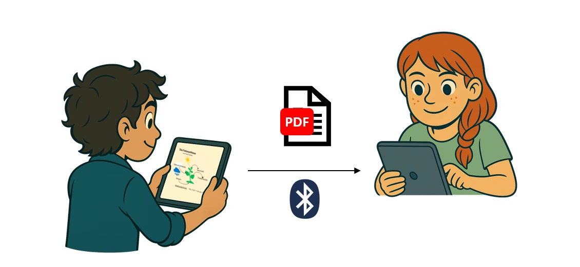 Sitzt du mit deinen Mitschülerinnen und Mitschülern im Unterricht oder auf dem Pausenhof zusammen, dann ist der drahtlose Austausch von Dateien eine praktische Möglichkeit.