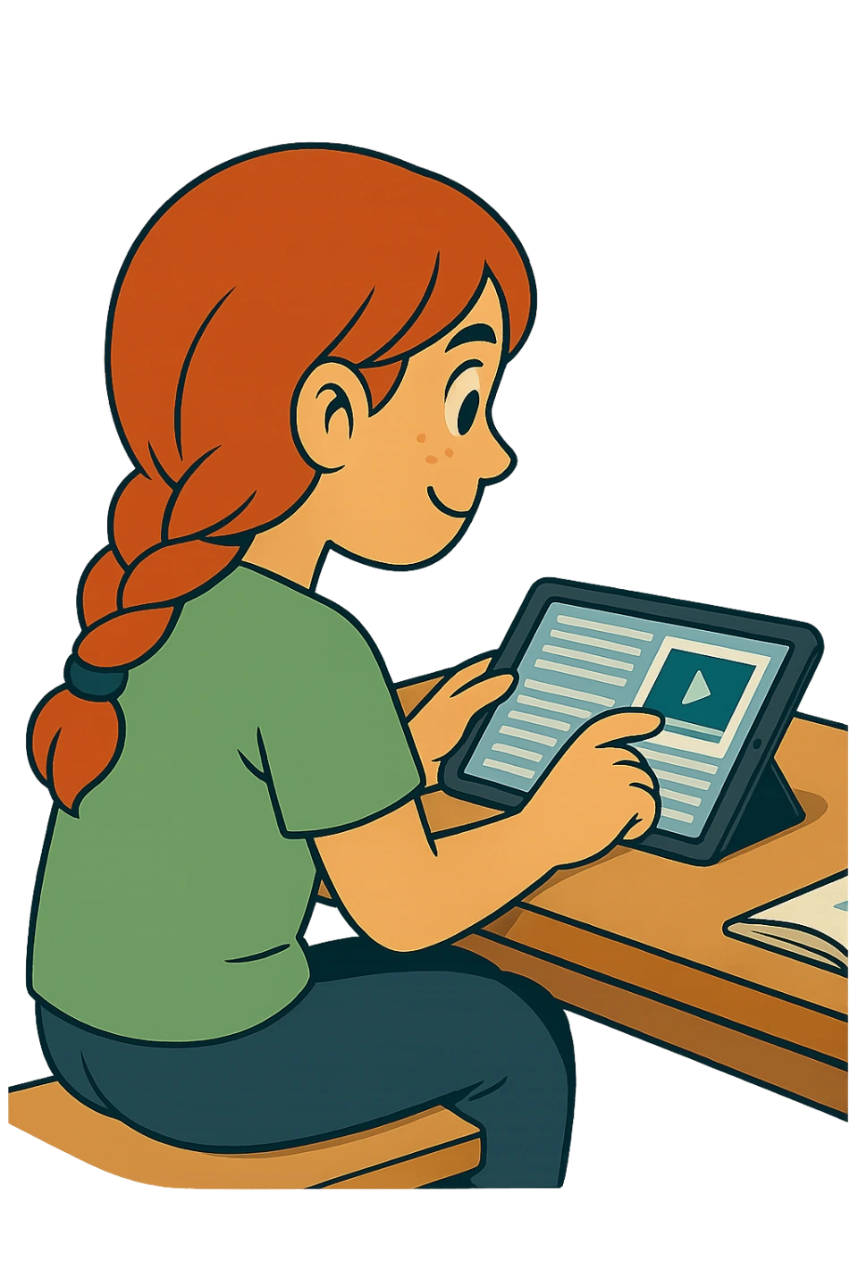 Tarek: „Das kenn ich! Ist mir auch schon oft so gegangen. Ärgerlich, wenn dann soviel Zeit draufgeht. Mir hat da mein großer Bruder echt gute Tipps gegeben, wie man beim Lernen mit dem Tablet bei der Sache bleibt.”