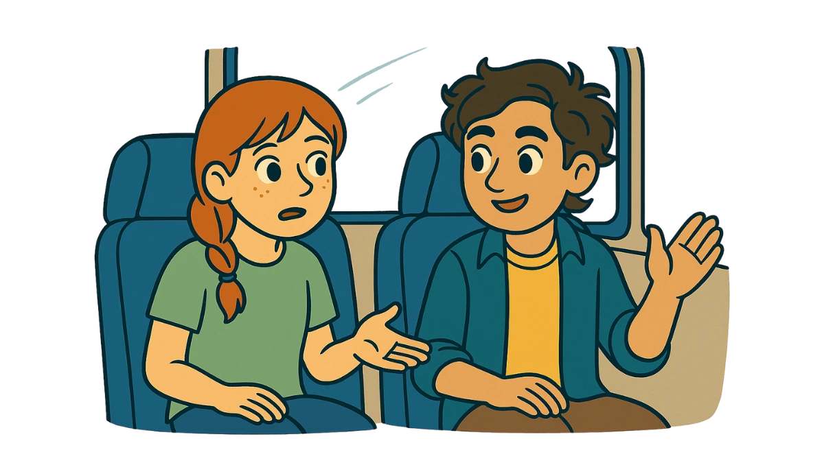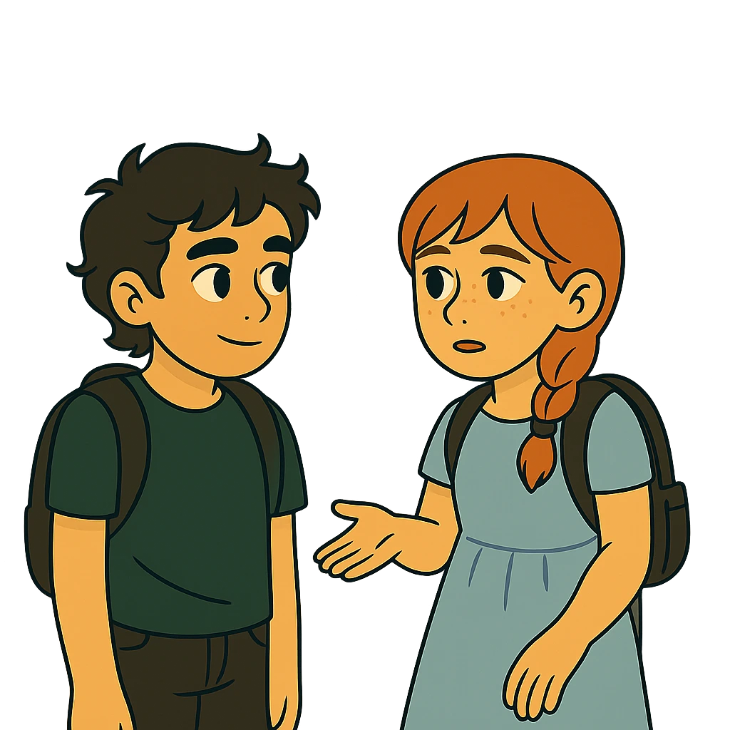 Ida und Tarek treffen sich an der Bushaltestelle.