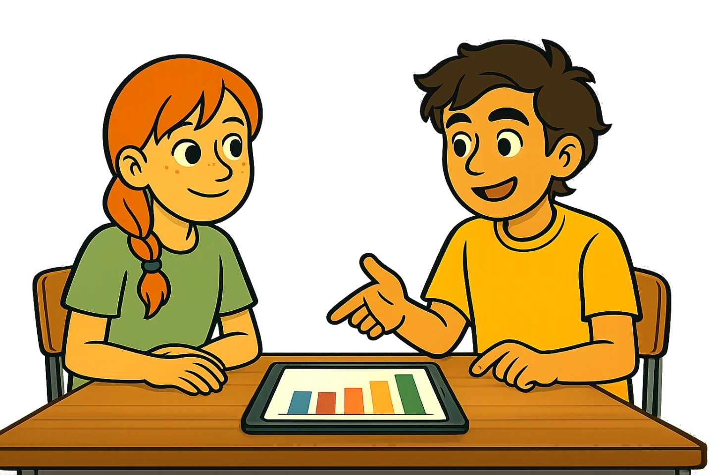 Am nächsten morgen begrüßt Ida Tarek freudestrahlend: “Guten morgen Tarek, voll toll! Mit den Hausaufgaben hat es gestern richtig gut geklappt und ich hatte dann endlich Zeit mich mit Zoe im Park zu treffen. Die Tipps von Tarkan und dir haben wirklich super geholfen! Dafür habt ihr euch beide ein Eis von mir verdient.”