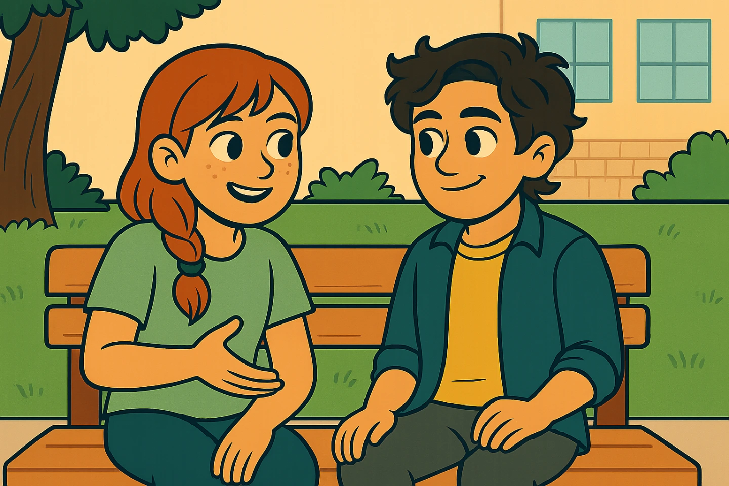 Nach dem kleinen Schreck mit den eingeblendeten Nachrichten sitzen Ida und Tarek in der Pause nebeneinander.