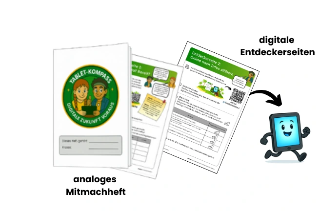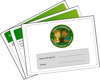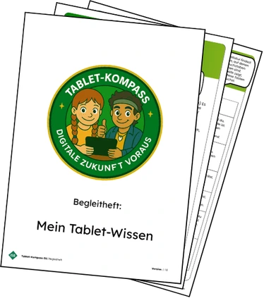 Das Begleitheft Mein Tablet-Wissen mit einem Glossar zu den wichtigsten neuen Begriffen, die im Verlauf des Tablet-Kompass GS eingeführt werden und Seiten zur Hilfestellung bei Problemen, können in mehrfacher Ausfertigung für die Kinder im Klassenzimmer ausgelegt werden. Es dient zusätzlich als Unterstützung im eigenverantwortlichen Lernprozess.