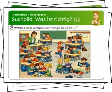 Das Tablet-Kompass GS - bildbasierte Material bietet durch eine klare visuelle Gestaltung einen leicht zugänglichen Einstieg in die Aufgaben.