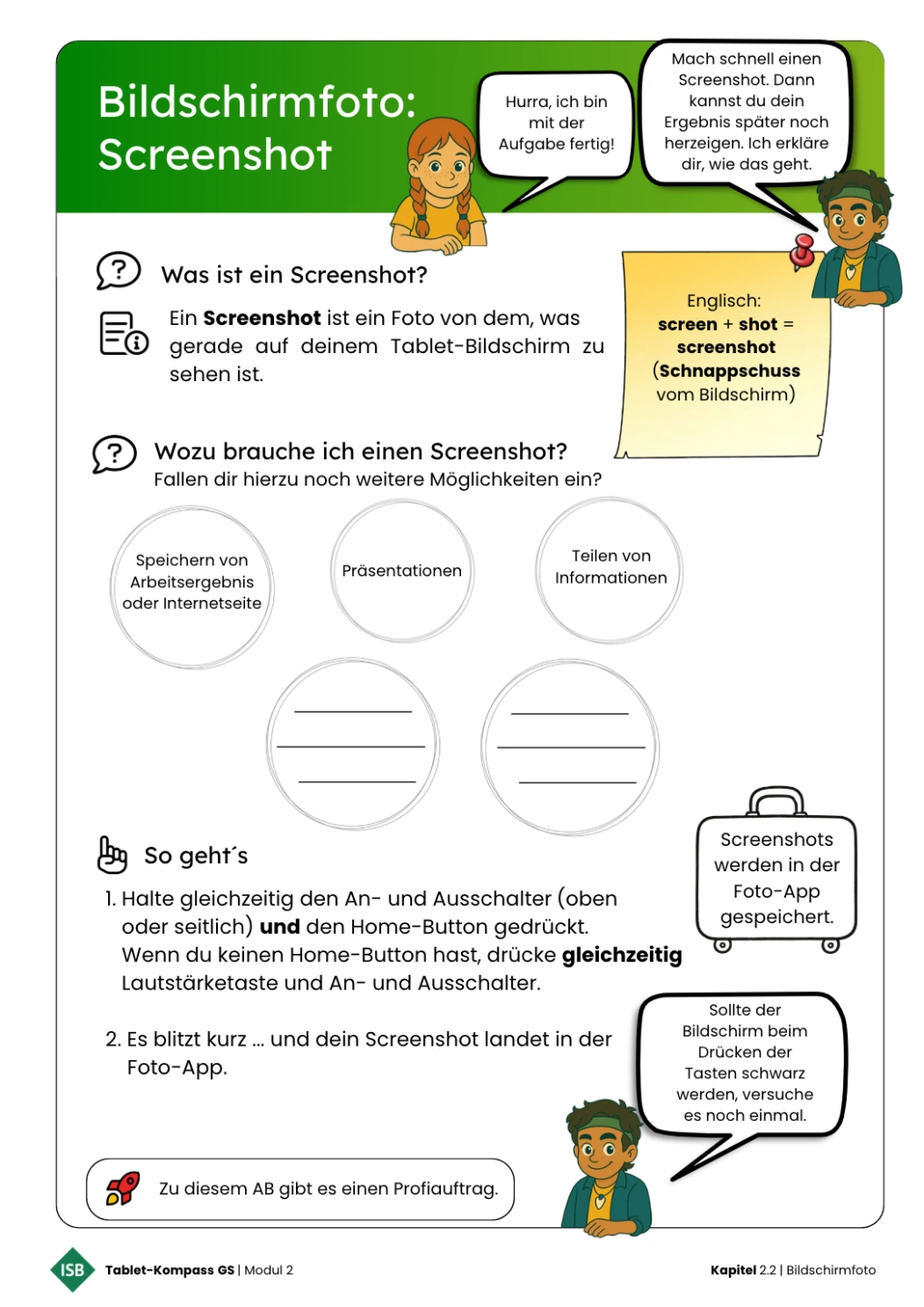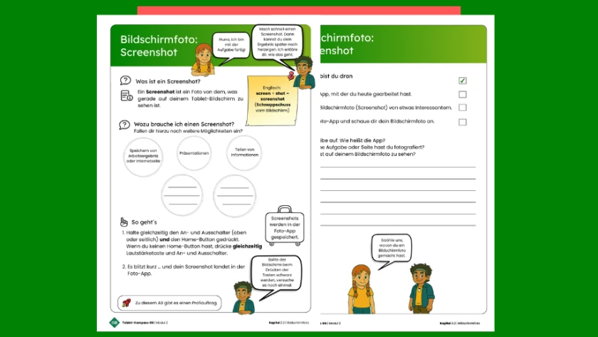Das Thema “Bildschirmfoto: Screenshot” wird im Mitmachheft auf den Seiten 12 und 13 bearbeitet. Hier stellen wir Ihnen die Seiten als Download zur Verfügung. Neben der sofort einsetzbaren PDF-Version finden Sie auch eine Version im PPTX-Format, die Sie selbstständig anpassen können.