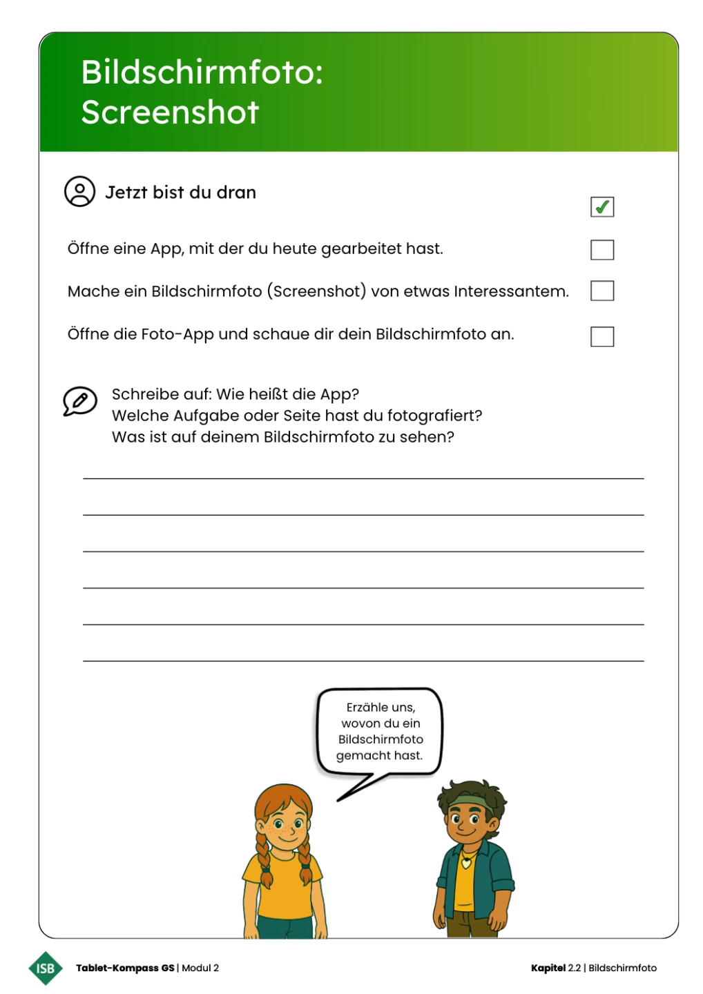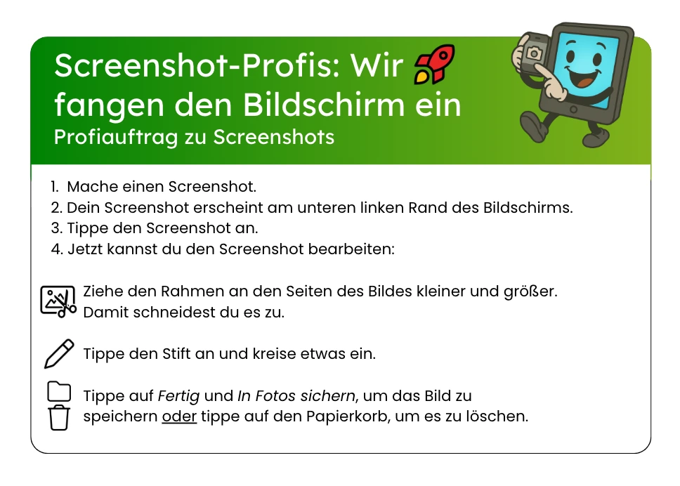… führen die erforderlichen Schritte zur Erstellung eines Bildschirmfotos auf dem Tablet selbstständig und fehlerfrei durch.