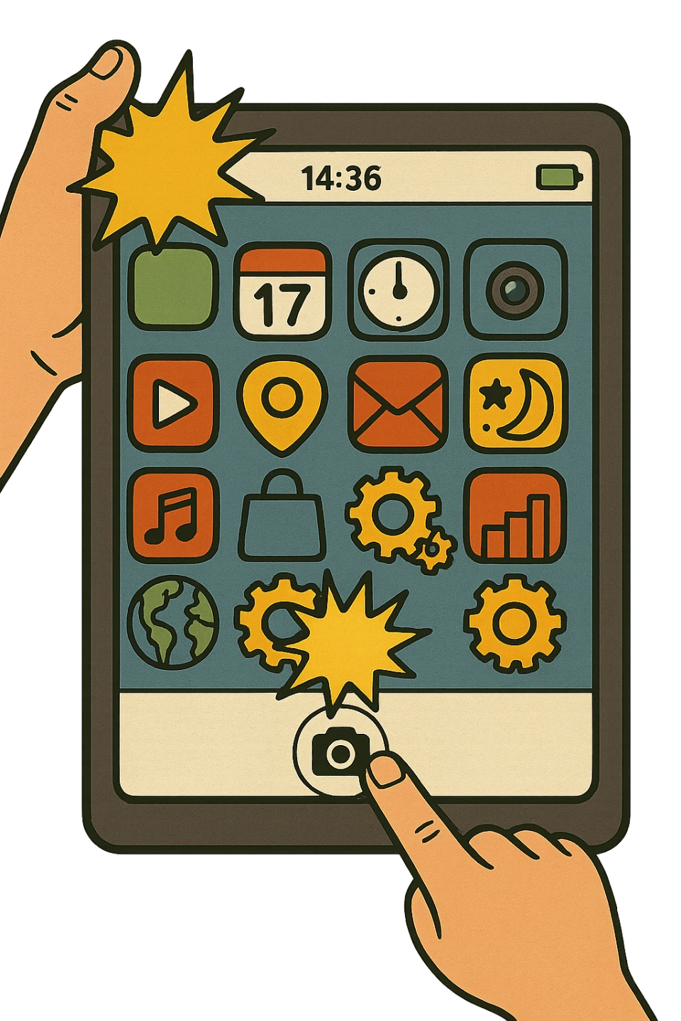 Die Lehrkraft zeigt zu Beginn der Unterrichtsstunde auf dem Tablet ein Bildausschnitt (idealerweise wird das Display an die Tafel gespiegelt), der offensichtlich aus einer App oder einem Spiel stammt, und fragt die Lernenden: „Wie könnte ich dieses Bild so schnell aufnehmen, ohne es abzumalen oder die App zu schließen?“