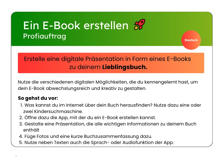 In diesem Kapitel beschäftigen sich die Lernenden mit der Erstellung eines eigenen E-Books.