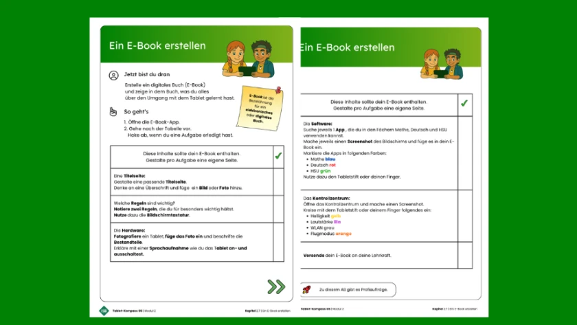 Das Thema “Ein E-Book erstellen” wird im Mitmachheft auf den Seiten 22 und 23 bearbeitet. Hier stellen wir Ihnen die Seiten als Download zur Verfügung. Neben der sofort einsetzbaren PDF-Version finden Sie auch eine Version im PPTX-Format, die Sie selbstständig anpassen können.
