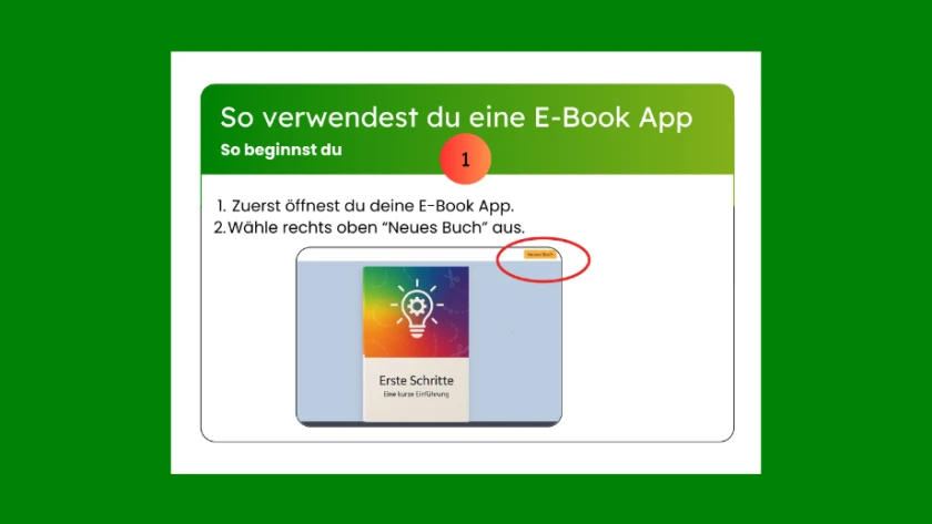 Zur visuellen Unterstützung in der Phase der Einführung der E-Book-App bieten wir hier eine Präsentation zum Download an, in der kleinschrittig die Funktionalitäten einer solchen App gezeigt werden.