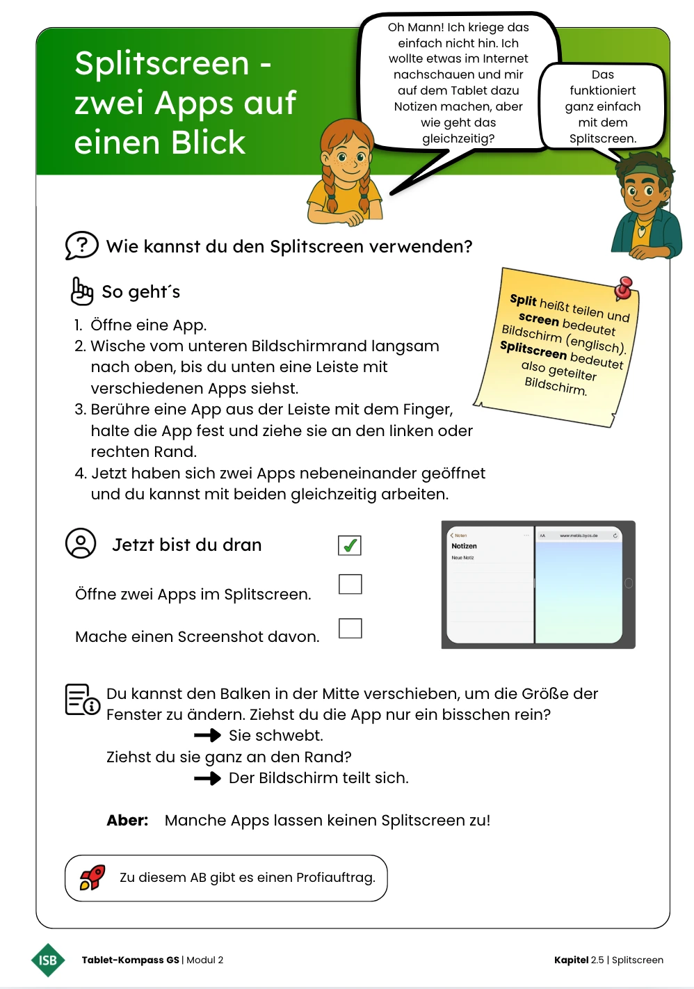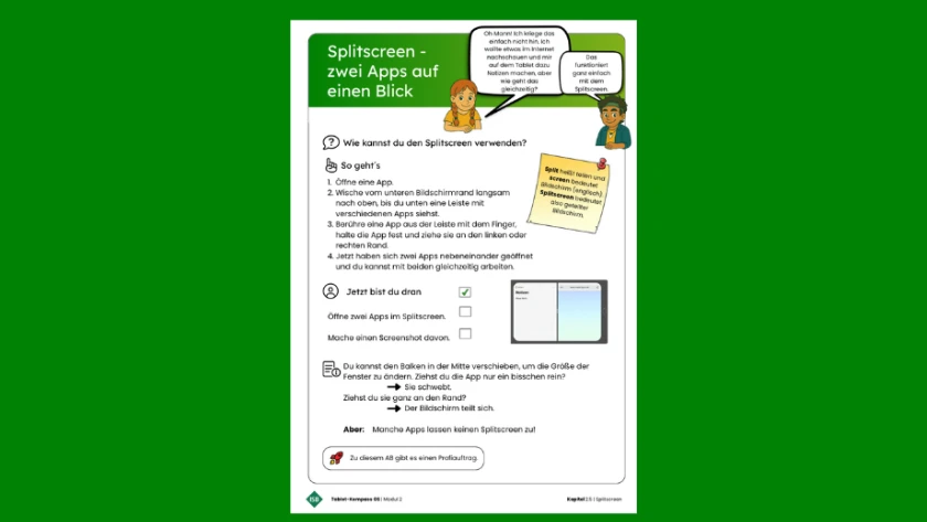 In diesem Kapitel setzen sich die Lernenden mit der Splitscreen-Funktion des Tablets auseinander.