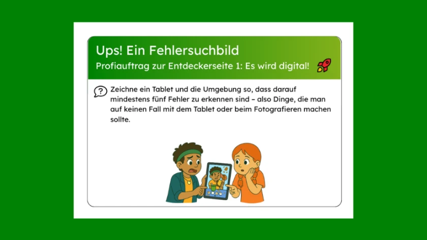Über den QR-Code auf der Mitmachheftseite, gelangen Ihre Schülerinnen und Schüler zu den einzelnen Aufgaben und Inhalten der Entdeckerseite 1 und setzen sich individuell mit dem Thema “Es wird digital! Bist du bereit?” auseinander.