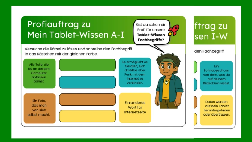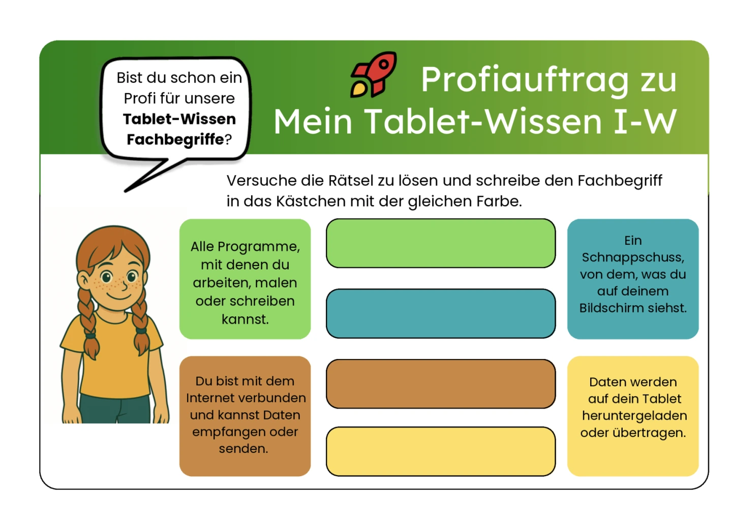 Zu beachten ist: Die Arbeitsblattseiten von Mein Tablet-Wissen sollten den Kindern von Beginn an zur Verfügung stehen.