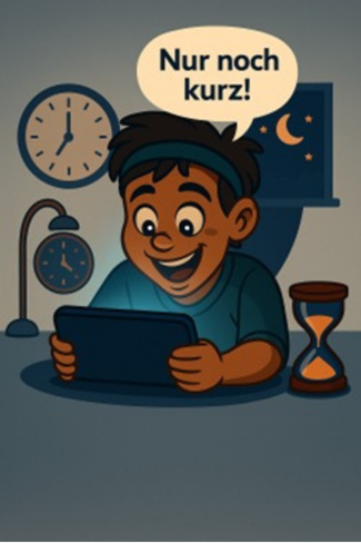 In diesem Kapitel setzen sich die Lernenden bewusst mit ihrer Bildschirmzeit auseinander. Sie lernen, was zur Bildschirmzeit zählt, welche gesundheitlichen Risiken eine übermäßige Nutzung mit sich bringt und wie sie mit einfachen Strategien ihre Medienzeit selbst regulieren können.