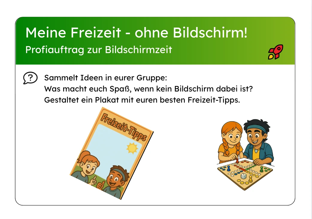 Zum Thema “Bildschirmzeit” finden Sie hier einen Profiauftrag im PDF-Format, den Sie sofort einsetzen können.