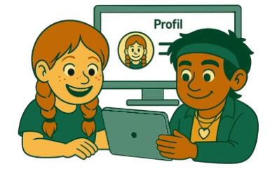 Wenn alle in deiner Klasse soweit sind, könnt ihr euch gemeinsam mit der Lehrkraft darüber austauschen wie ihr eure Profile gestaltet habt.