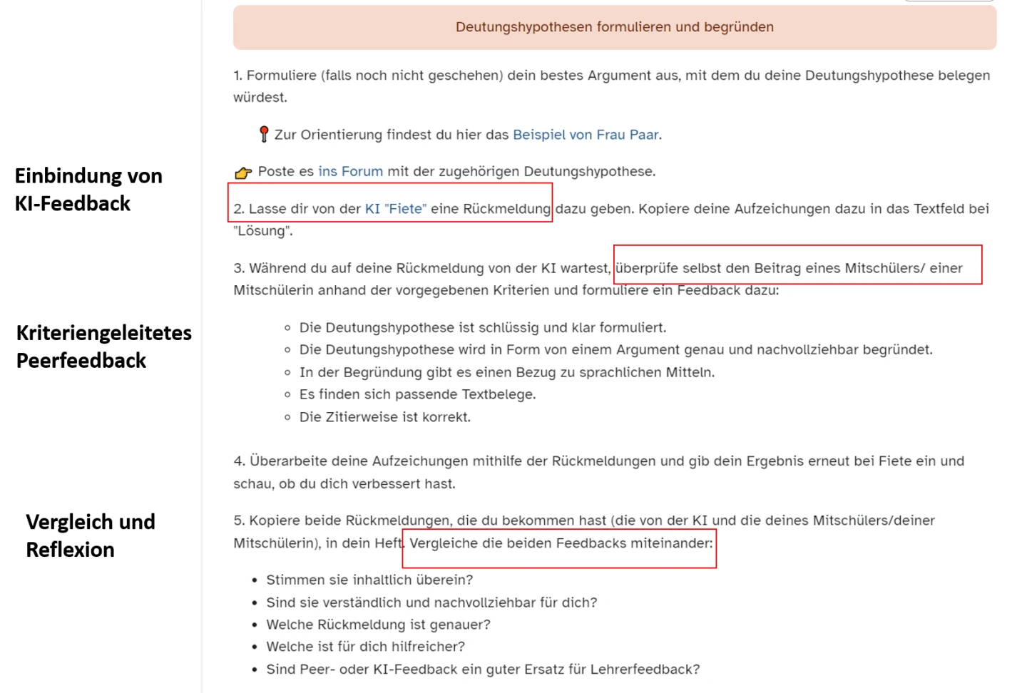 Beispiel zur Einbindung von KI – Feedback -