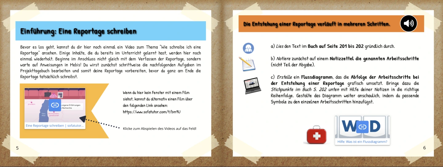 Kombination aus Text-, Video- und Audioelementen sowie Verlinkungen zu weiteren Hilfen -