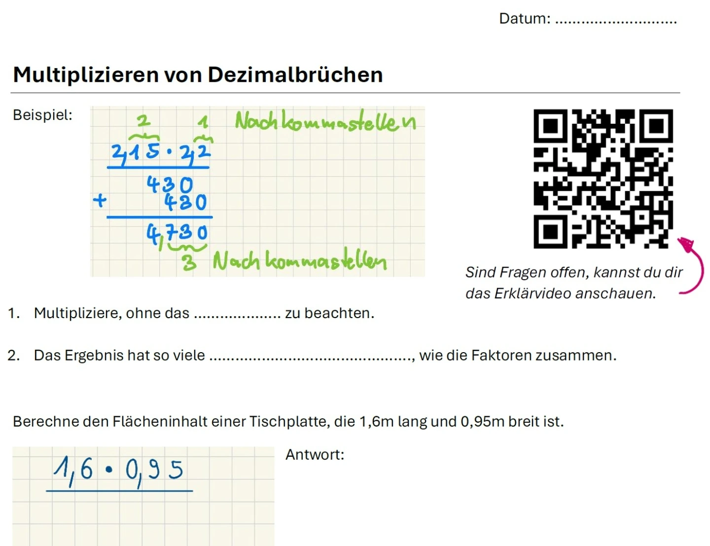 Der QR-Code auf dem analogen Theorieblatt führt zu einem passenden Erklärvideo, das optional angesehen werden kann. -