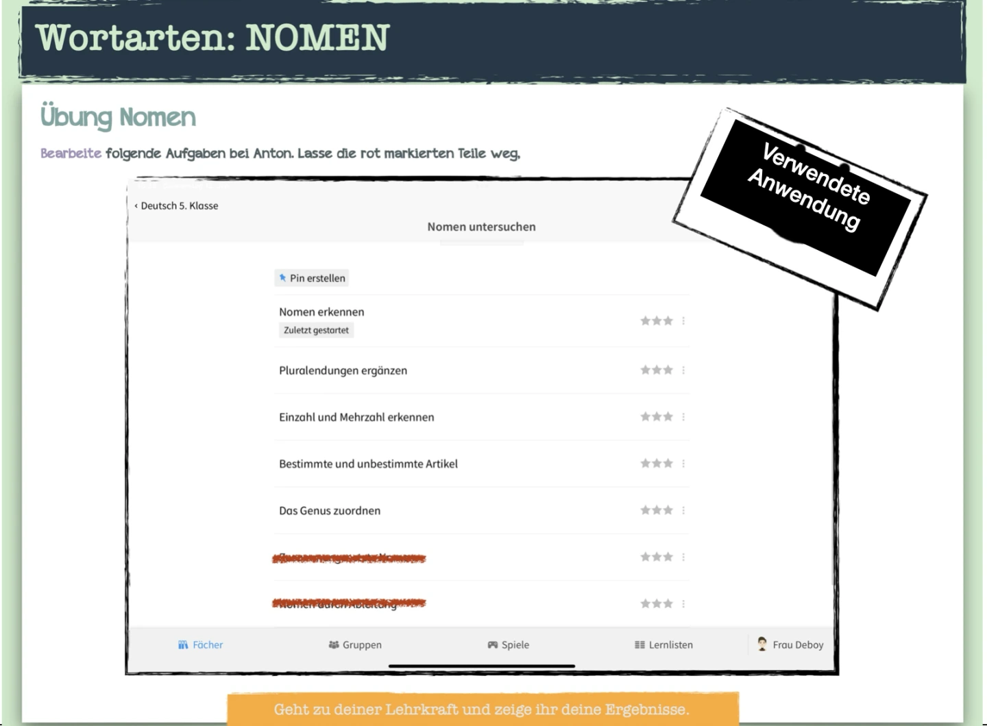 Verschiedene Lernangebote werden in Form einer Präsentation den Schülern zur Verfügung gestellt. Die Materialien sind in der Lernplattform hinterlegt. -