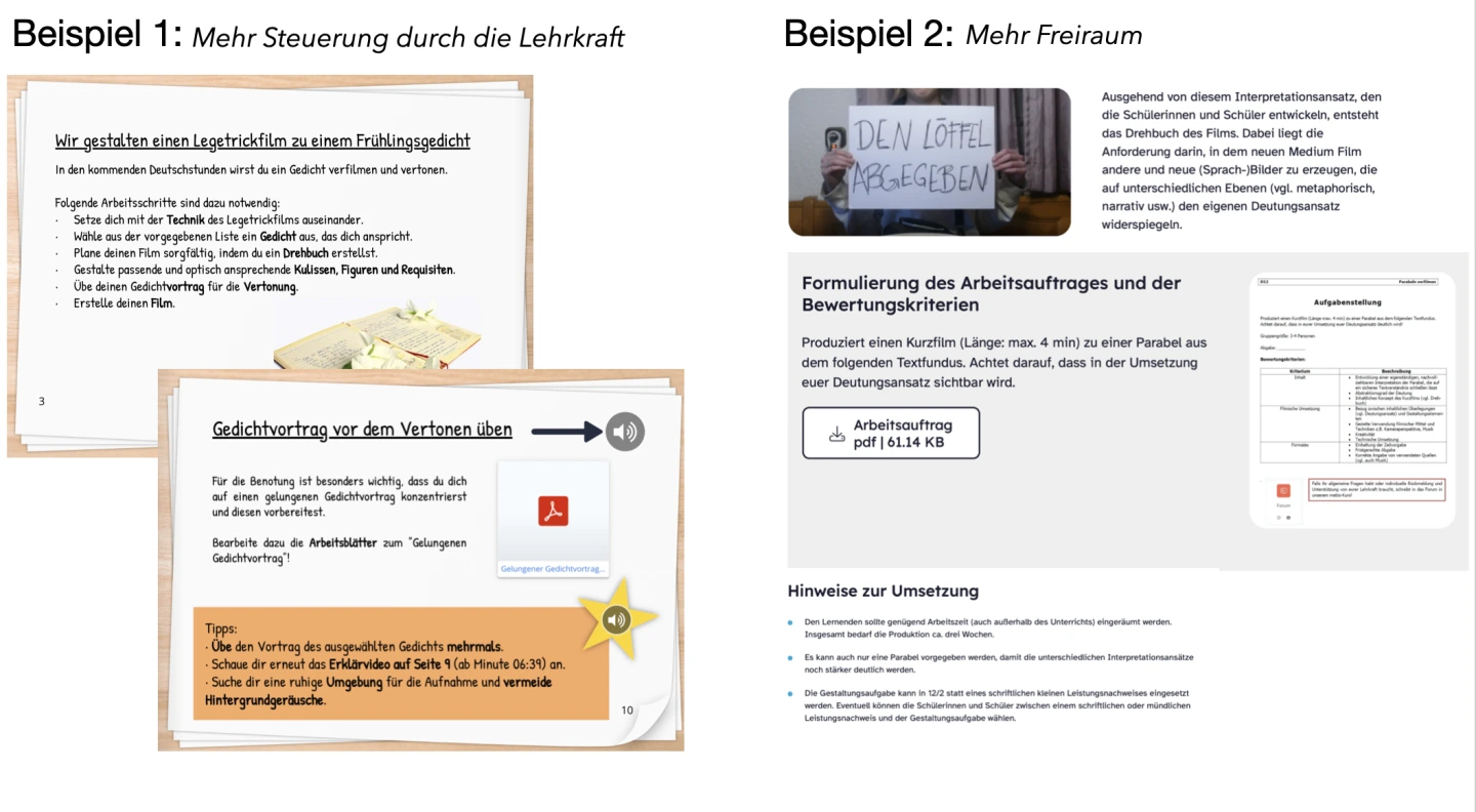 Neue digitale Aufgabenformate wie die Erstellung von Podcasts, Blogs und Erklärvideos ermöglichen ein selbstgesteuertes Lernen in Projekten. Je nach den Vorkenntnissen und Voraussetzungen der Lernenden kann dabei mehr Entscheidungsfreiheit eingeräumt werden – beispielsweise bei der Wahl der Sozialform, der Gruppenzusammensetzung, des Lernprodukts oder der Inhalte. Die Auseinandersetzung mit medialen Inhalten fördert zudem kritisches Denken und ein ausgeprägtes Qualitätsbewusstsein.