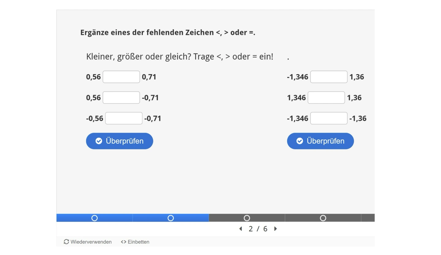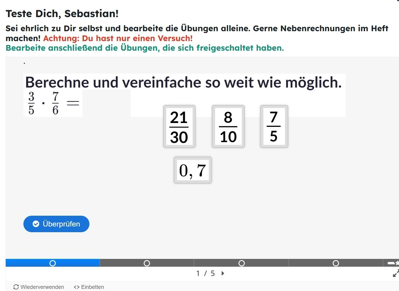 Nutzung von interaktiven Anwendungen zur Selbstkontrolle und Übungen eingebettet in die Lernumgebung