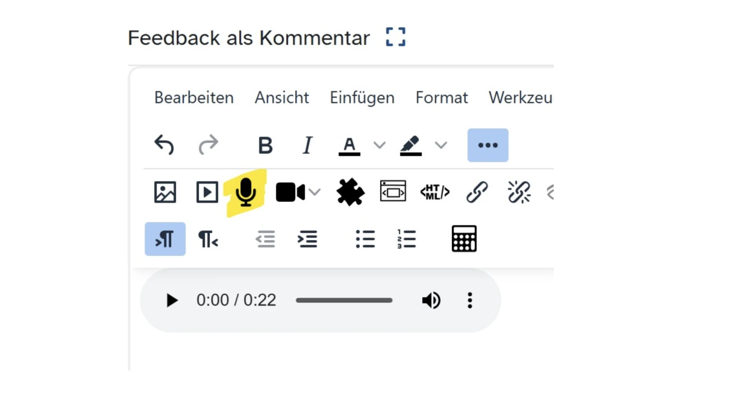 Durch gezielte Kommentare und Rückmeldungen können Lehrende den Lernenden wertvolle Unterstützung bieten, wodurch diese ihre eigene Entwicklung besser nachvollziehen können. Hier: Audiokommentare nach einer Abgabe über die Aktivität Aufgabe in der mebis Lernplattform sind für die Lehrkraft sehr einfach und schnell zu erstellen. -