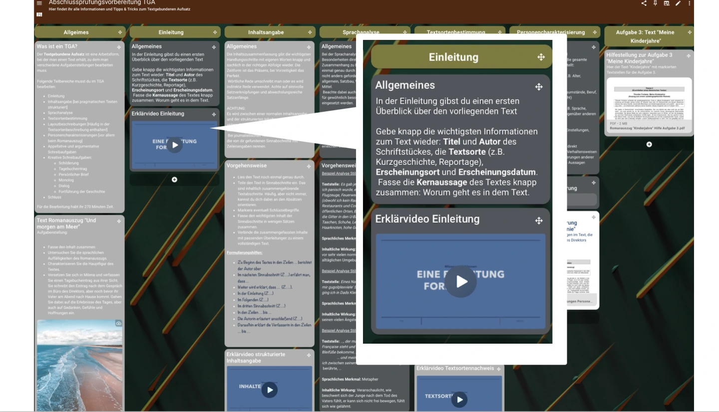 Zur Vorbereitung der Abschlussprüfung im Fach Deutsch (textgebundener Aufsatz, Realschule) werden passende Materialien auf einer digitalen Pinnwand bereitgestellt. Diese erlauben es Schülerinnen und Schülern, unabhängig von Ort und Zeit Inhalte zu wiederholen und sich auf Prüfungen vorzubereiten. -