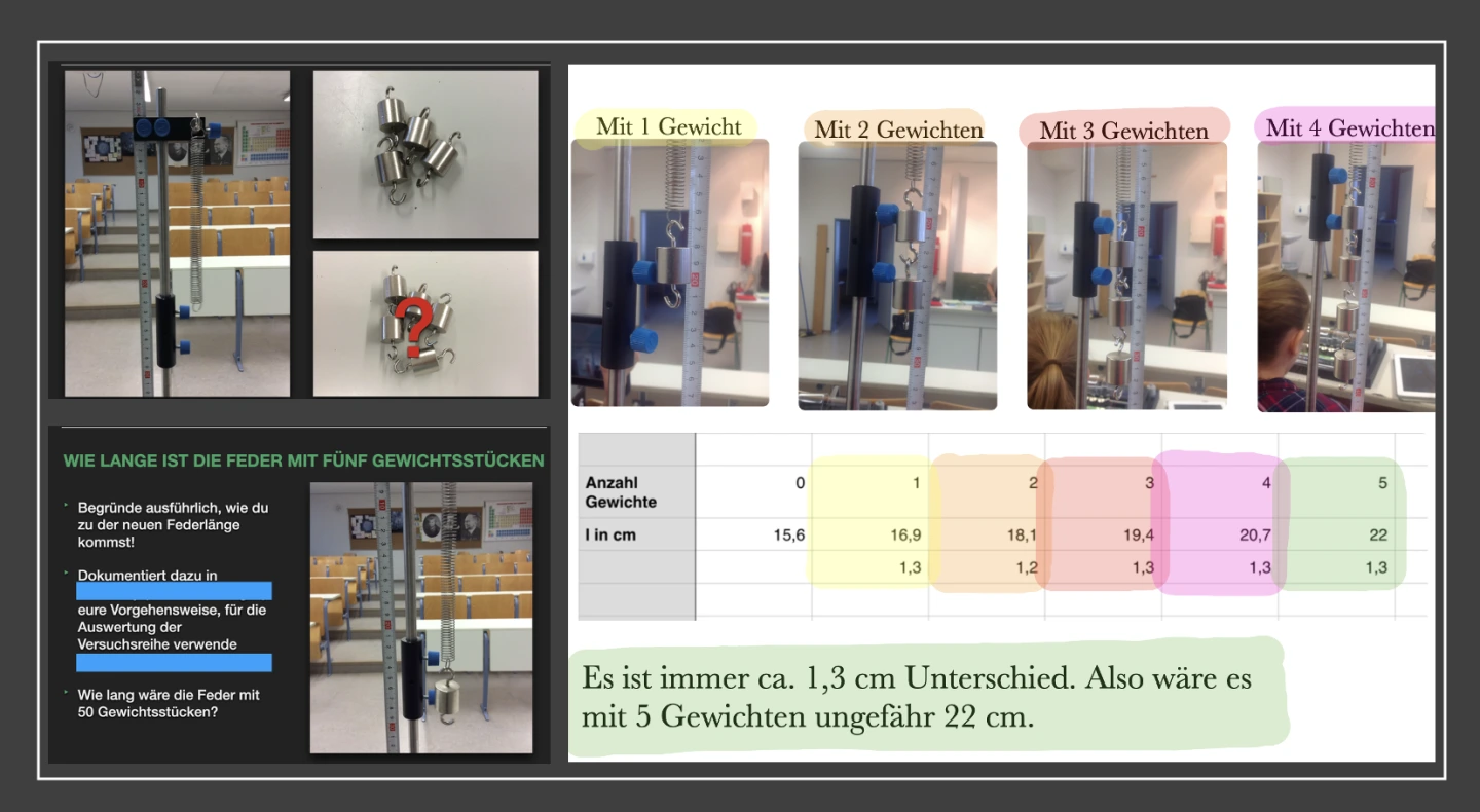 Den Schüler wird freigestellt, in welcher Form Sie Ihre Ergebnisse dokumentieren. Hier: Längenausdehnung einer Feder -