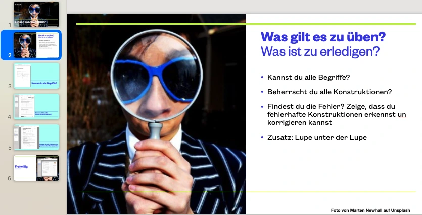 Strukturierung eines Lernpfades mithilfe einer Präsentationssoftware