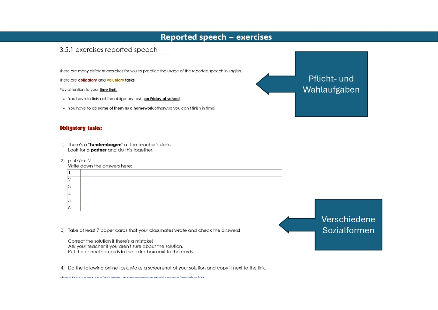 Wahlmöglichkeit bezüglich der Sozialform und dem Lernprodukt