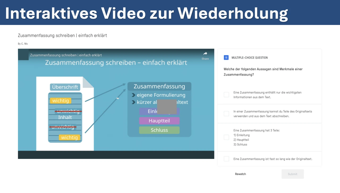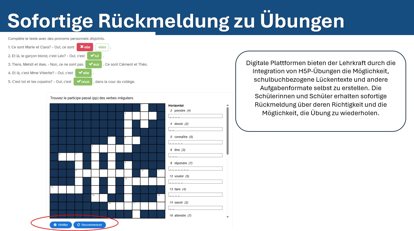 Darüber hinaus ermöglichen digitale Plattformen eine differenzierte Rückmeldung, die über ein simples „richtig“ oder „falsch“ hinausgehen kann. So können beispielsweise gezielte Hinweise eingeblendet werden, die die Lernenden schrittweise zur richtigen Lösung führen. Bei Bedarf lassen sich auch passende Erklärvideos und weiterführende Übungen verlinken, die individuell und themenspezifisch unterstützen.