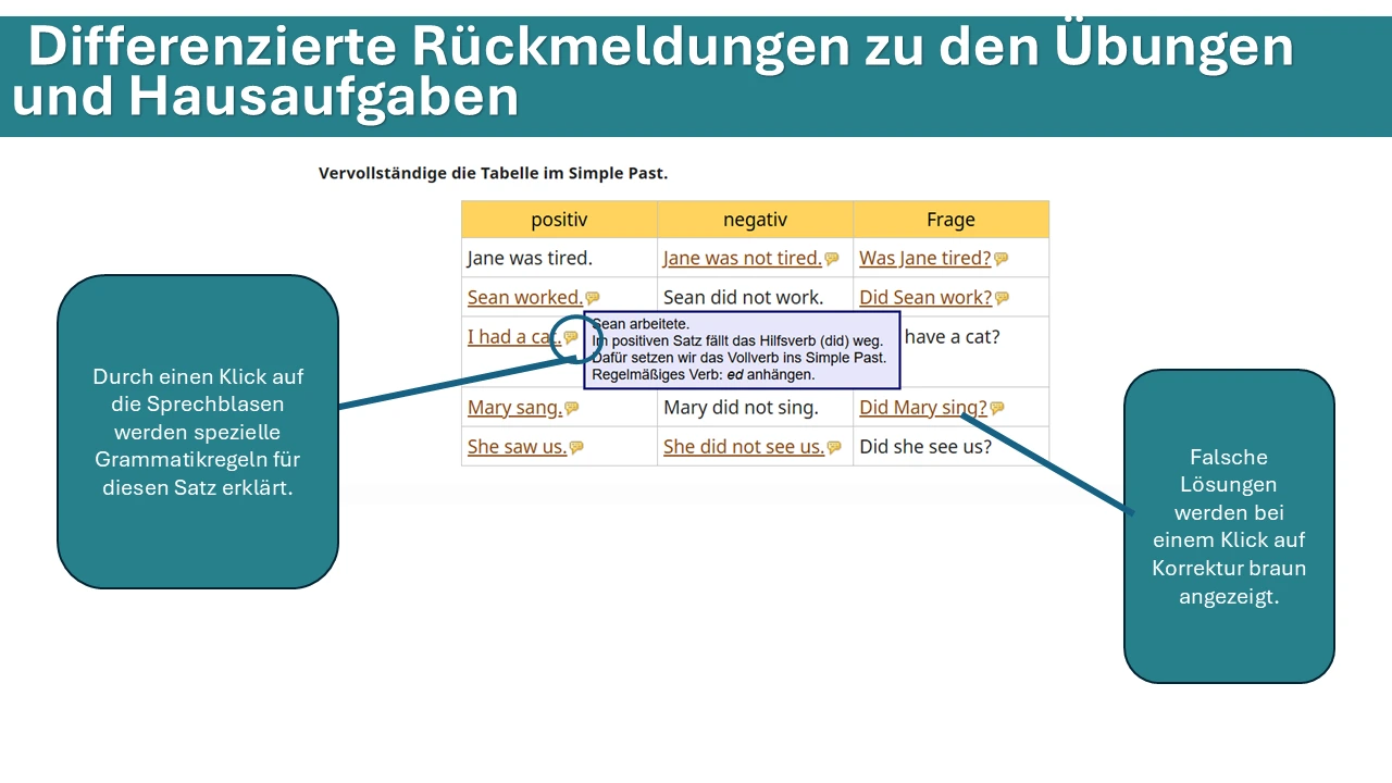 Differenzierte Rückmeldungen zu den Übungen und Hausaufgaben