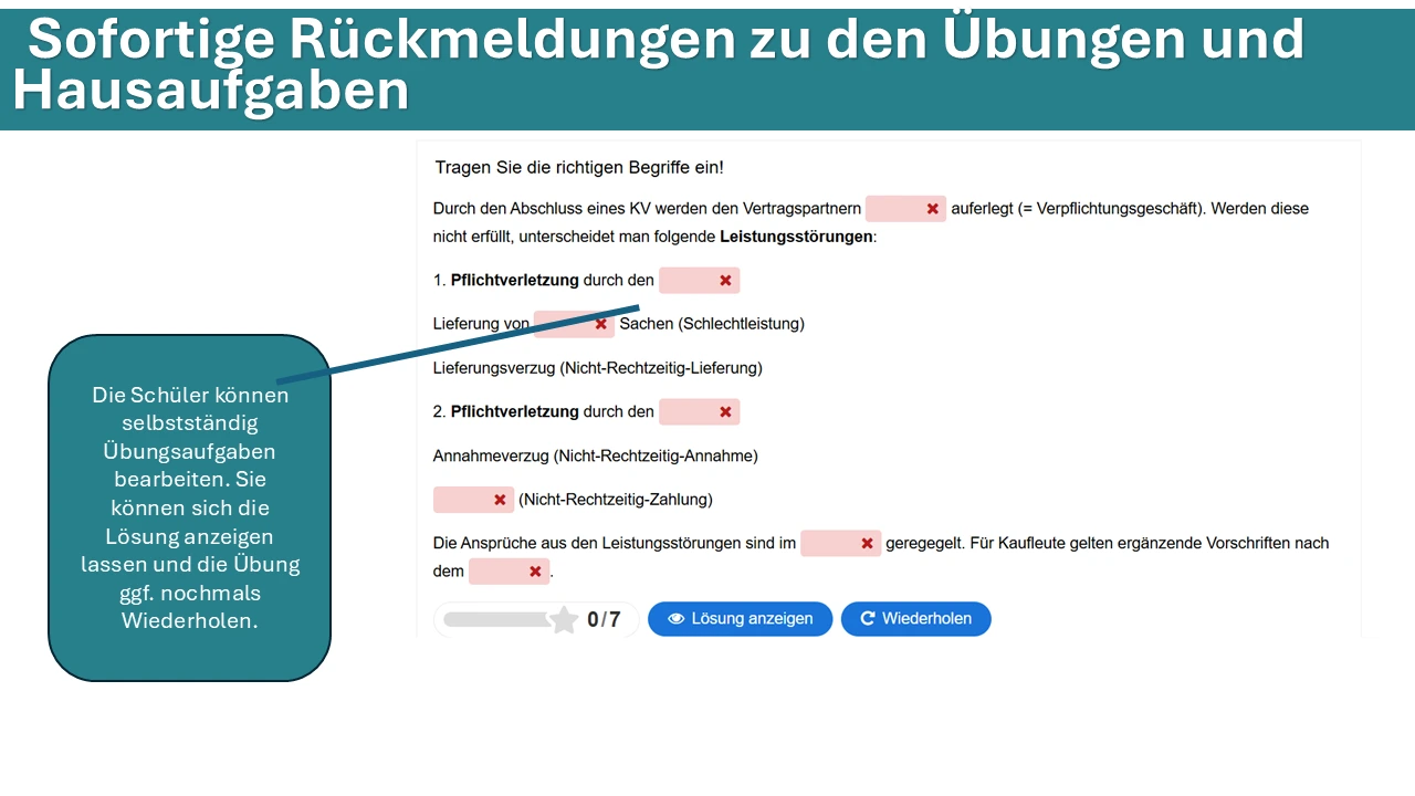 Sofortige Rückmeldungen zu den Übungen und Hausaufgaben