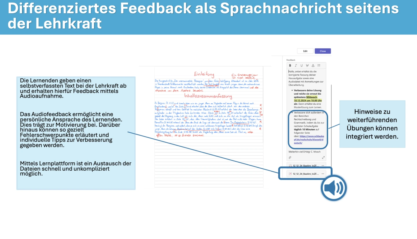 Audio-Feedback zu einem Schreibprodukt mit Verlinkung zu weiterführenden Übungen