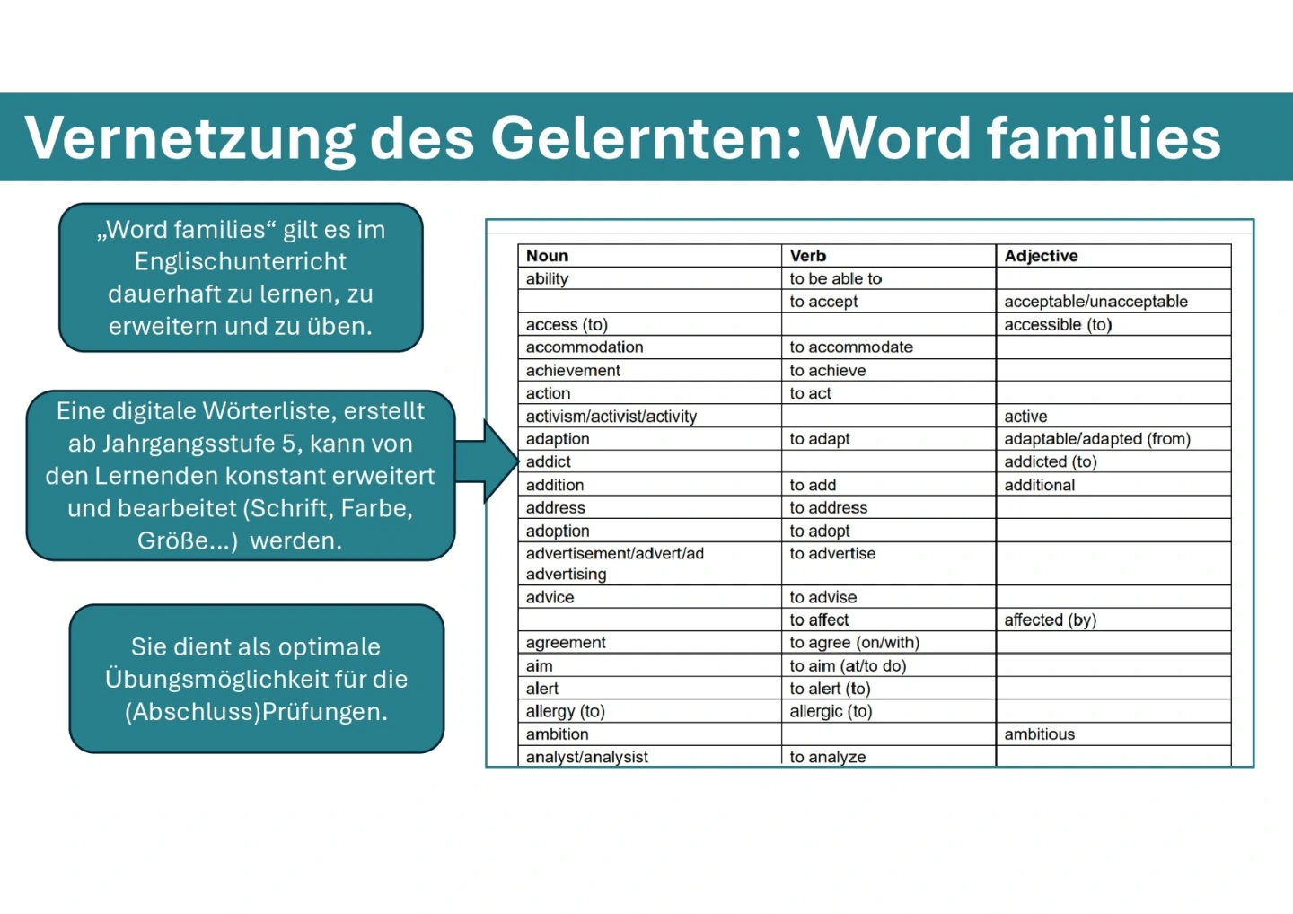 das Gelernte mit bereits vorhandenem Wissen zu vernetzen und in neuen Kontexten anzuwenden.