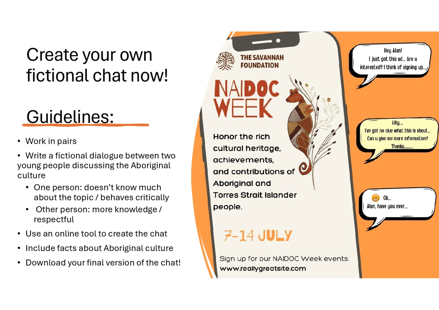 Erstellung eines fiktiven Chats zum landeskundlichen Thema „Aborigines“ im Englischunterricht. -
